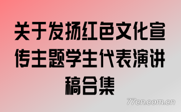 百度搜索“77cn”或“免费范文网”即可找到本站免费阅读全部范文。收藏本站方便下次阅读,免费范文网,提供经典小说范文大全关于发扬红色文化宣传主题学生代表演讲稿合集在线全文阅读。